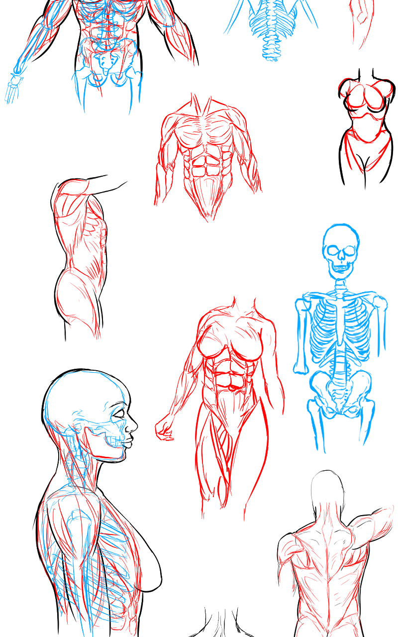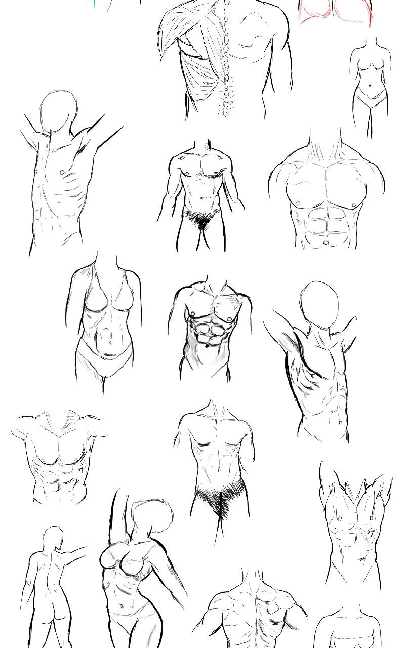 31 images featuring various simple torso anatomy sketches along with gesture and figure sketches
